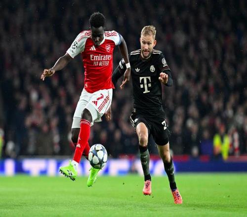 总身价方面,阿森纳达到13.1亿,拜仁则是9.5亿。