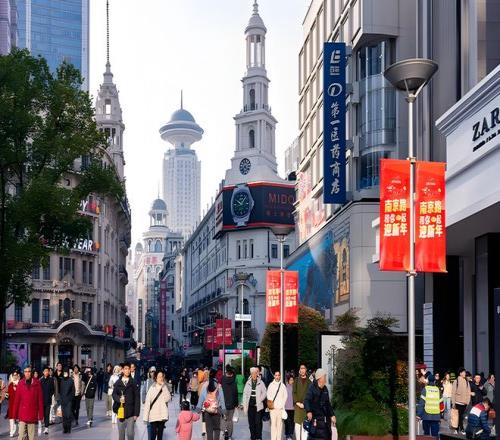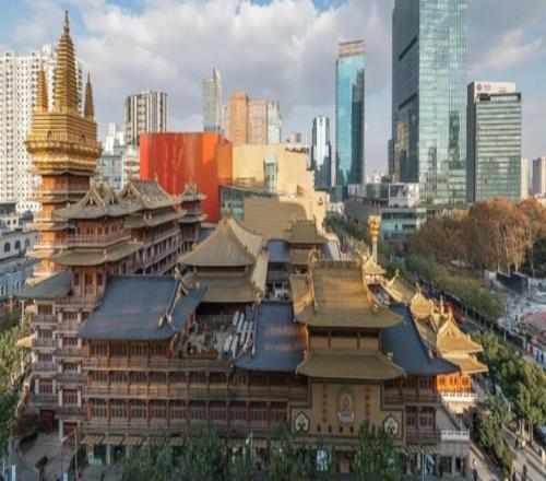 再往西,上海恒隆广场、中信泰富广场、锦沧文华广场等繁华商业地标一字排开,国际大牌橱窗琳琅满目。上海展览中心、静安寺等标志性建筑错落于摩天楼宇间,千年古刹飞檐斗拱与现代商圈相映成趣。
