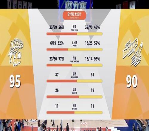 本节末段,大鲨鱼的进攻有所回暖,随着古德温接李弘权的突破上篮打成2+1,大鲨鱼半场以54-37领先17分进入更衣室。