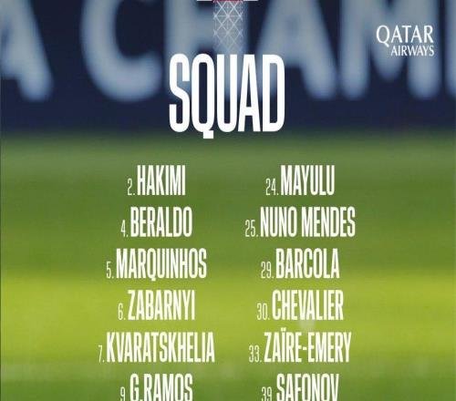 北京时间10月22日凌晨3点,巴黎圣日耳曼将迎来欧冠联赛阶段第三轮客场对阵勒沃库森的比赛,赛前,巴黎官方公布了本场比赛的名单,其中登贝莱、马尔基尼奥斯回归,法比安-鲁伊斯、若昂